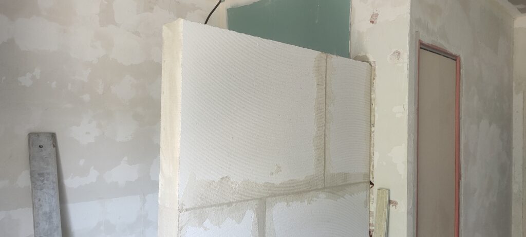 – Démolitions du plan vasque maçonné et d’une marche devant la baignoire