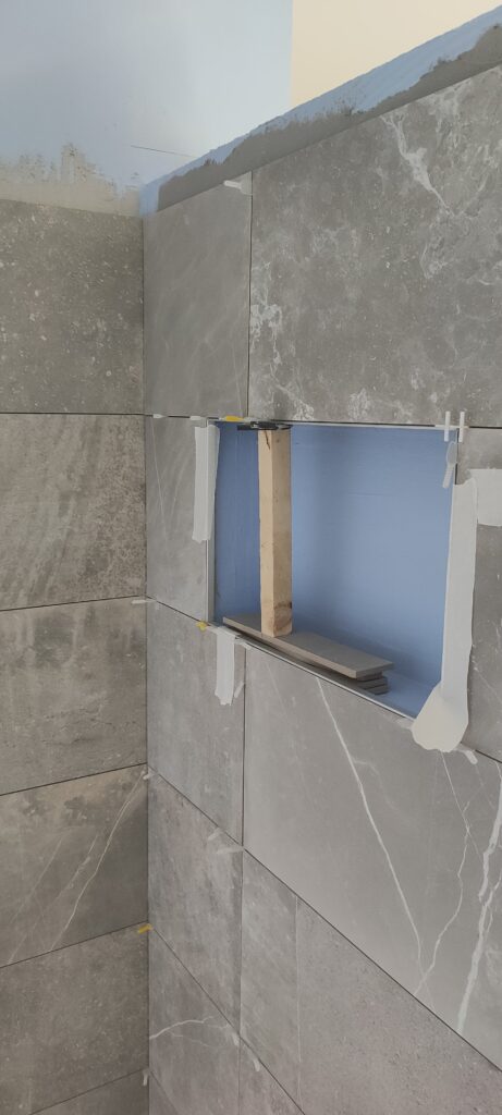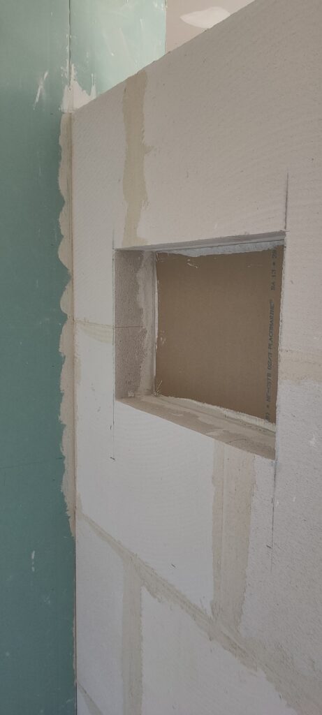 – Pose des équipements de la salle de bain (meuble vasque, radiateur sèche serviette, étagères, …)