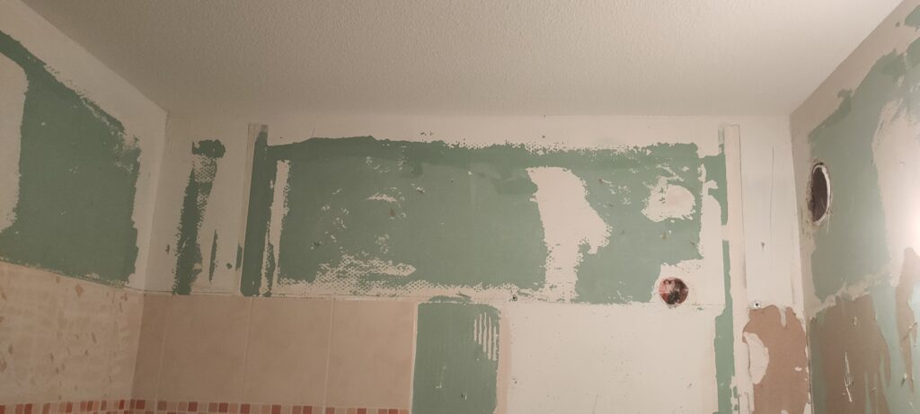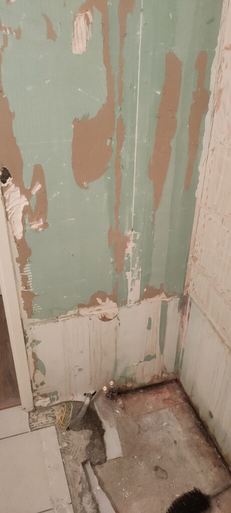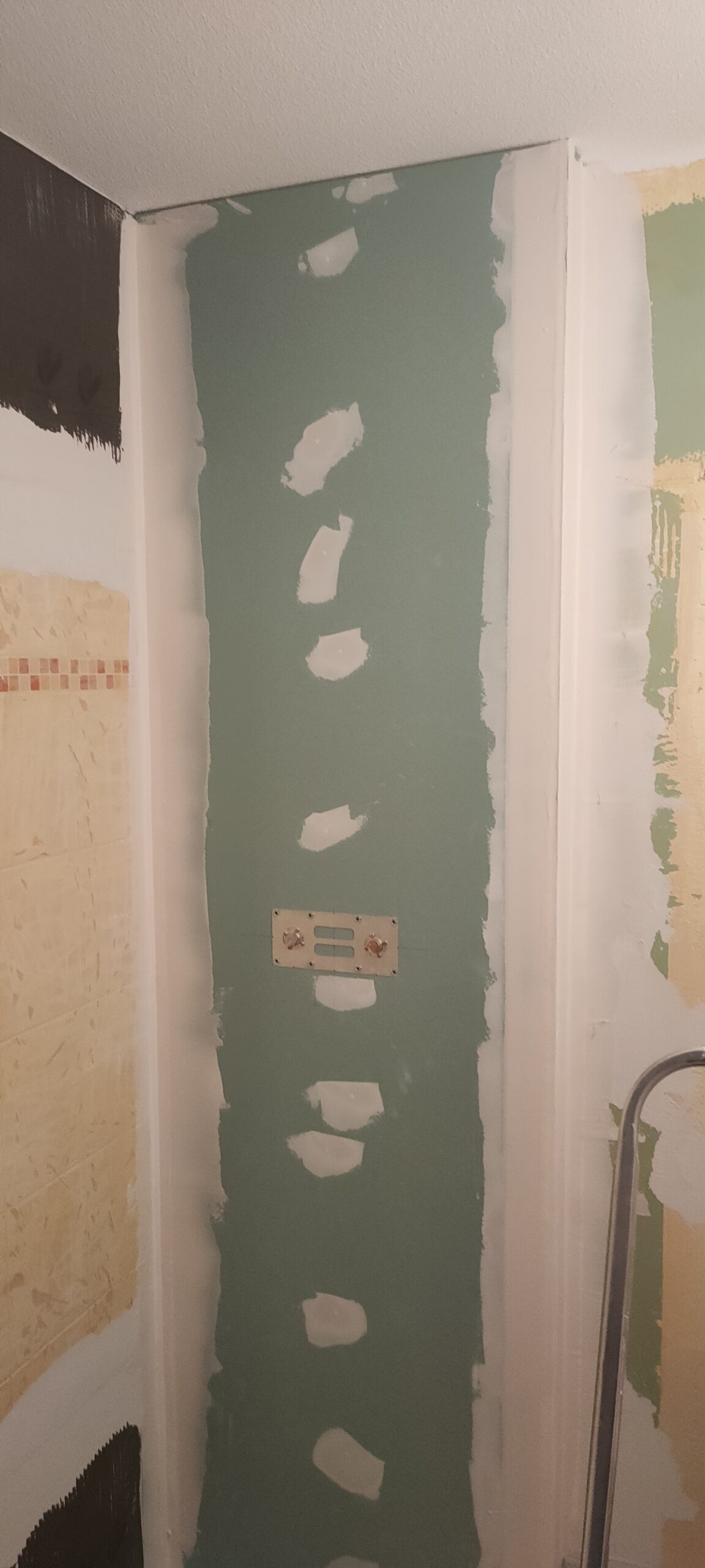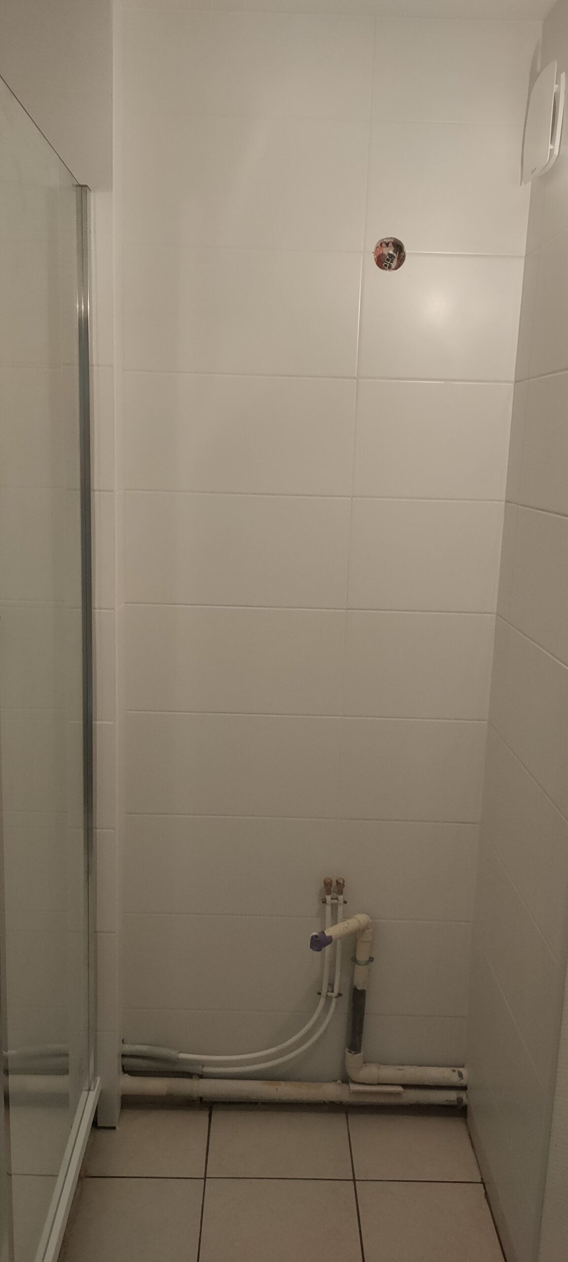 – Réalisation d’une contre cloison en plaques de plâtre pour l’installation de la colonne de douche
