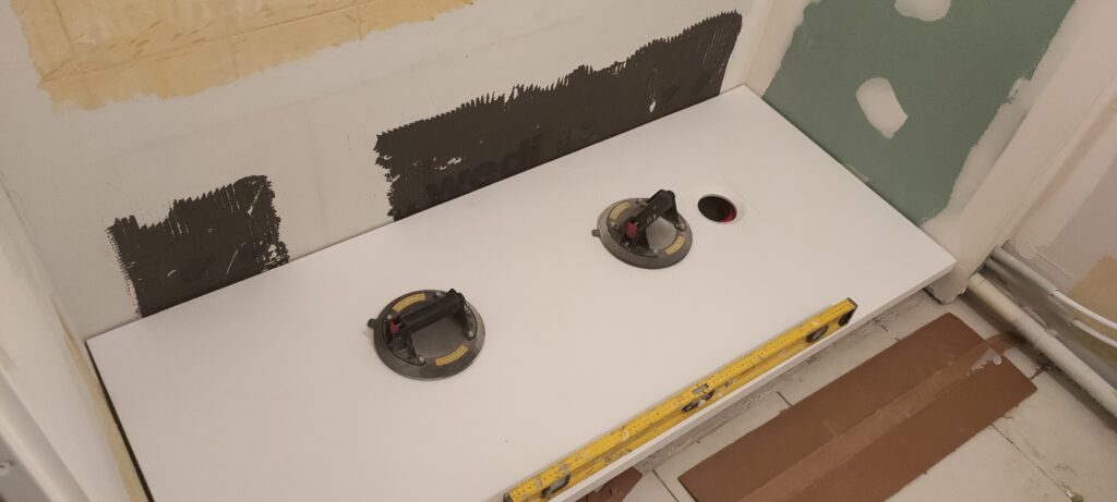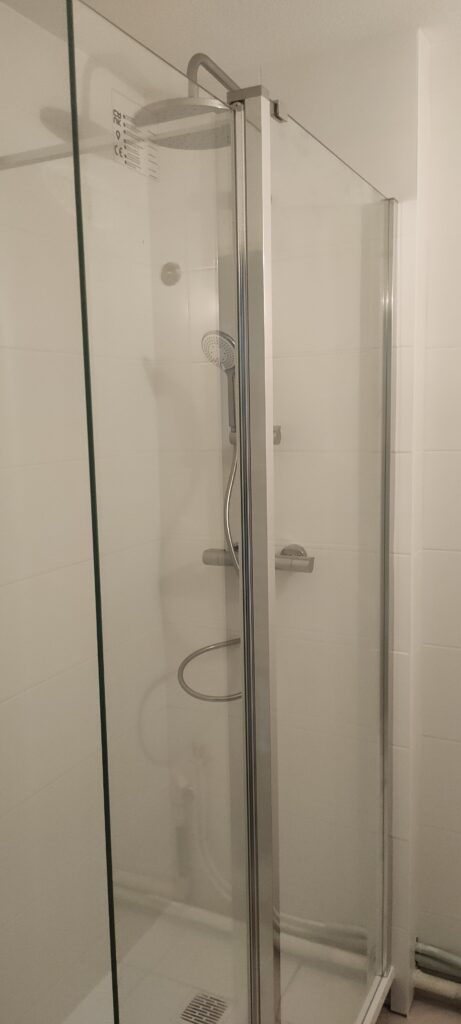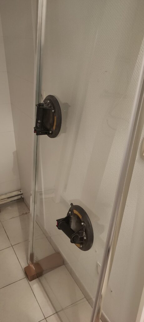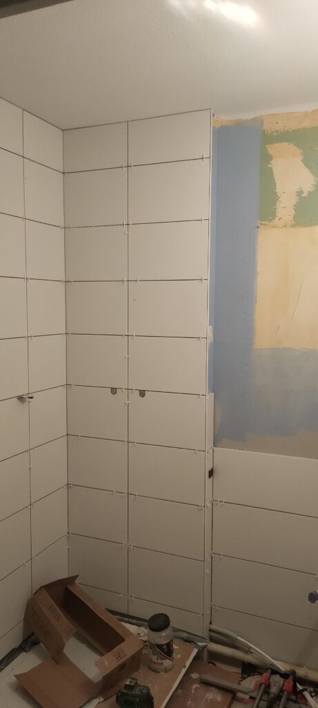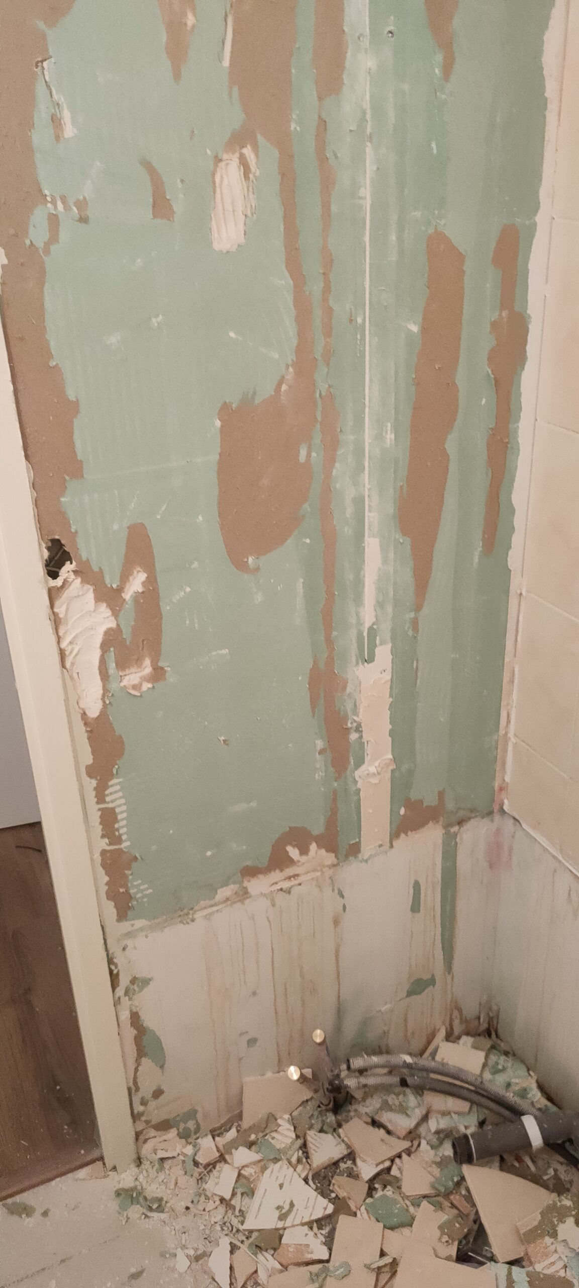– Réalisation d’une contre cloison en plaques de plâtre pour l’installation de la colonne de douche